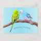 Esta tarjeta postal presenta una pintura digital de una linda pareja de periquitos en una rama. ¡Hermosa tarjeta postal para todos los amantes de las aves! Diseñado por Marions Artwork.