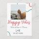 Postal Pareja de vacaciones con vibraciones felices nombr
