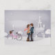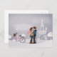 Postal Pareja en París Snowy con la Torre Eiffel
