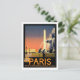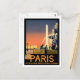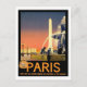 Esta tarjeta postal es una versión en miniatura del vintage afiche de viaje de París ilustrado por Julian LaCaze. Las imágenes son la fuente y el obelisco en la plaza de la Concordia.