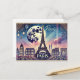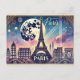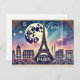 Aquí está la postal de viaje al estilo acuático que presenta París con la Torre Eiffel en estilo Art Deco moda, ahora pintada con brochas fluidas. 🇫 🇷 🗼 🌙 El fondo representa una noche romántica iluminada por la luna con suaves tonos pastel de azul profundo, violeta y dorado, y luminosas luces de la ciudad. El texto "París romántico" está en un guión elegante y fluido con una textura acuarela. ✨ El diseño incluye bordes elegantes, acentos dorados glamorosos y patrones giratorios que crean una atmósfera de viaje soñadora y elegante.