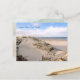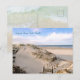 Tarjeta postal de escena de playa de Florida con foto tomada en Ponce Inlet. La vista es desde el nuevo paseo marítimo en Smyrna Dunes Park en New Smyrna Beach y muestra el antiguo paseo marítimo que solía llevar a la playa. El texto impreso en la parte frontal se puede cambiar o eliminar. El reverso está en blanco con una imagen de agua de océano que lame la orilla.