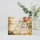 Un diseño rosa floreciente en un entorno antiguo de pergamino sepia, con detalles cursivos y de borde curvo desvanecido.