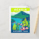 Esta vibrante postal resalta el Parque Nacional Acadia con un audaz giro de arte retro. Perfecto para los amantes de los diseños coloridos y juguetones.