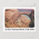 Una imagen retro que muestra una imagen para los arcos en el Parque Nacional Arches, postal inspirada en Utah 1964.