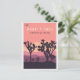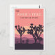 ¡A cualquiera le encantaría recibir esta postal rosa de viaje con un ilustracion retro de una puesta de sol en el desierto de Joshua Tree National Park en California!