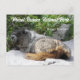 Postal de viaje con una foto de la vida silvestre de una Marmota de Hoary, comúnmente encontrada residiendo en el terreno subalpino del Parque Nacional Mount Rainier, Washington.
