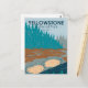 Diseño de arte vectorial de Yellowstone Forest. El parque cuenta con espectaculares cañones, ríos alpinos, exuberantes bosques, aguas termales y géisers, incluyendo su más famoso, Old Faithful.