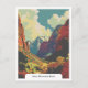 Descubra los impresionantes paisajes del Parque Nacional de Zion en Utah con esta vintage postal que exhibe sus majestuosas formaciones rojas, profundos cañones y la vibrante flora del desierto. Conocido por sus increíbles rutas de senderismo, entre ellas Angels Landing y The Narrows, el Zion ofrece a los amantes de las actividades al aire libre impresionantes vistas y aventuras en un maravilloso paraje geológico único. Esta postal de estilo retro capta la esencia de Zion, invitándolo a explorar la belleza natural y las emocionantes experiencias que este extraordinario parque nacional tiene para ofrecer