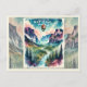 Aquí hay un diseño de postales de montaña de estilo vintage con una paleta de acuarela y ambiente nostálgico.