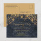 Moderno, elegante y de moda azul marino con brillantes luces de cuerda dorada y la postal de invitación de la fiesta de compromiso bokeh con un hermoso tipo de letra de guión caligrafía.