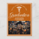 Este personalizado naranja de la invitación postal de la fiesta de graduación de la escuela de medicina para una enfermera o médica presenta tipografía blanca de alta calidad bajo un médico caduceus y su nombre universitario para la clase de 2024. Personalizar con tu año de graduación bajo la elegante caligrafía para un gran graduado universitario personalizado que invita a postales.