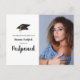 Anuncie el aplazamiento de su fiesta de graduación con esta postal con un moderno guión de cepillo escrito a mano de moda y un sencillo tapón de graduación con tassel dorado. En la parte posterior se incluye un área de mensaje editable para modificarla según se desee. PUNTO DE FOTO: Para obtener resultados más rápidos/mejores, elija una foto con el sujeto en el medio y/o pre-recorte a una forma similar como se muestra ANTES de subir y llenará el espacio de la foto perfectamente. Póngase en contacto con el diseñador si desea modificar este diseño o en otro producto.