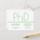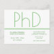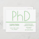 Una invitación postal para una fiesta de graduación de doctorado. Esta invitación minimalista es blanca y verde. Todas las palabras se pueden personalizar.