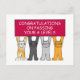 Cuatro gatos personalizados sostienen un cartel de color crema que dice 'Felicidades por pasar tus niveles A'.