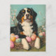 Celebre la Pascua con el dulce y adorable San Bernardo en esta postal de estilo vintage. Con el icónico perro rodeado de huevos de Pascua pastel, flores de primavera florecientes y detalles festivos de temporada, este diseño es perfecto para los amantes de San Bernardo, los coleccionistas y los aficionados al arte nostálgico de las vacaciones. Un placer para compartir la alegría de Pascua.