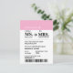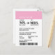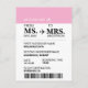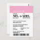 Tarjeta postal de pase de embarque moderno elegante personalizado para novia