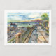 Acuarela original del icónico Paseo Gervasoni, una vista panorámica del puerto de Valparaíso. La obra evoca la atmósfera bohemia y decadente de la ciudad, con sus coloridos cerros y el océano Pacífico en el horizonte.