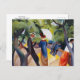 Postal con el cuadro, Promenade (1913), de August Macke (1887-1914). Un pintor expresionista alemán, influenciado por el cubismo. Representando una escena expresiva de hombres y mujeres vestidos formalmente en un parque de la ciudad.