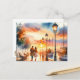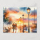 Recuerda a una vieja película romántica. Una pareja está paseando a lo largo de un paseo marítimo al atardecer.