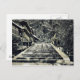 Foto en blanco y negro de escalones y faroles nevados en un pequeño santuario en Kioto, Japón.