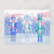 Tres exultantes petardos, con regalos encantados de la temporada invernal, se visten con vestimenta regal en medio de un bosque de color pastel besado por las heladas. Ilustracion original de Noël Snow
