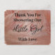 Crea una nota de agradecimiento económica con estas tarjetas postales de agradecimiento para baby shower con un fondo rosa pastel femenino. Todo el texto se puede personalizar fácilmente si lo desea. Hay mucho espacio en el reverso de la postal para incluir palabras de agradecimiento adicionales o fotos.
