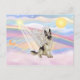 Un pastor alemán prueba sus alas entre las nubes esponjosas del cielo antes de que sean libres de entrar en el Puente Arcoiris donde los ángeles y amigos esperan. l