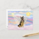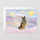 Un pastor alemán prueba sus alas entre las nubes esponjosas del cielo antes de que sean libres de entrar en el Puente Arcoiris donde los ángeles y amigos esperan. l