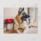 Postal Pastor Alemán Descansando Junto a un Recipiente de