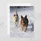 Postal Pastores alemanes corriendo en la nieve