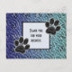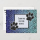 Esta es una forma económica de diferenciar su negocio de otros. La parte delantera presenta un fondo azul en mosaico y una gran huella de pata negra. Un gran cuadrado en el medio proporciona un fondo sólido para el texto. Tanto el color de fondo como el texto se pueden cambiar fácilmente. La parte trasera presenta texto que se puede personalizar rápidamente y mucho espacio para el nombre de su empresa, logotipo e información de contacto.
