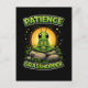 A serene cartoon grasshopper meditates on a rock beneath a glowing sunset, symbolizing mindfulness, patience, and inner peace.