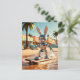 Postal patinaje sobre ruedas de conejo en la playa