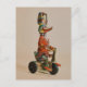 Postal Pato de juguete antiguo vintage en bicicleta
