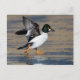 Postal Pato de macho Goldeneye aleteado en hielo