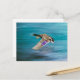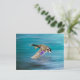 Una bonita postal con una foto de un pato mallard atrapado a mitad de vuelo.