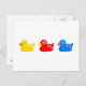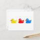 Ilustracion personalizado de tres patos de diferentes colores flotando juntos en una fila. Imagen disponible en varios regalos y productos.