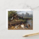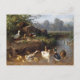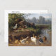 Postal con el cuadro del artista alemán Carl Jutz (1838-1916). Patos en el río. Un bonito paisaje artístico a orillas del río, con mallardos y otros patos nadando en el agua.