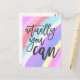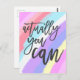 Envía vibraciones positivas a alguien con este diseño vibrante con un fondo en un patrón de arco iris diagonal en coral brillante, amarillo, blanco, lila y azul, y las palabras de aliento citan Realmente se puede en un guión elegante.