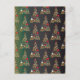 Postal Patrón de árbol de navidad de oro verde mate