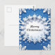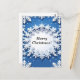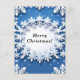 Intrincados copos de nieve blancos crean un marco simétrico sobre un fondo azul radiante, evocando una atmósfera invernal festiva y helada, perfecta para diseños temáticos estacionales y festivos.