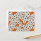 Postal de patrón Art Déco basada en un patrón tradicional estilizado de crisantemo utilizado en textiles japoneses, en blanco cremoso delineado en negro con un fondo de óxido naranja