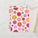 Patrón de flores coloridas en amarillo, naranja, rosas, lila y rojos sobre un fondo de color crema.
