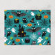 Gracioso patrón de Halloween con murciélagos, gatos, arañas, fantasmas, calabazas, casa embrujada, copas.