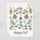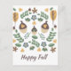 Postal Patrón de hojas de follaje floral de otoño con bel