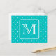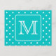 Diseño monograma personalizado en blanco y verde azulado. La carta inicial se puede personalizar. El fondo es un patrón de puntos de polka en verde azulado y blanco.