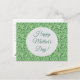 Patrón verde con hojas y flores acuarelas Postcard. Tipografía verde moderna.