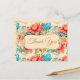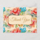 Florituras victorianas con un patrón floral sin fisuras colorido y dinámico, con elegantes peonías rojas, botánicos turquesa, amarillo, naranja y verde. Un blanco apagado personalizable da a esta tarjeta postal de agradecimiento doblada un ambiente vintage, mientras que la caligrafía en oro para su personalización la hace única y sofisticada.
