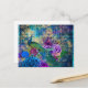Postal Pavo real coronado en floral azul morado
